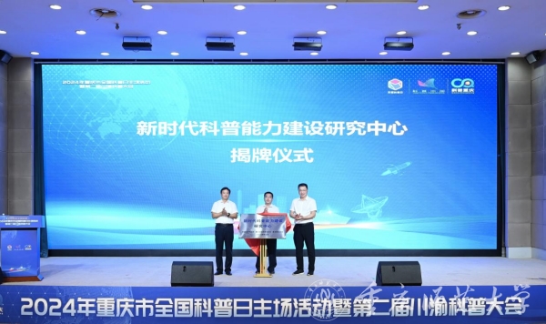 启动仪式上,王国胤与与会嘉宾共同点亮了2024年重庆市全国科普日活动暨第二届川渝科普大会启动装置,并与中国科普研究所副所长张利洁,重庆市科协党组书记、副主席李雷霆,共同为新成立的“新时代科普能力建设研究中心”揭牌。