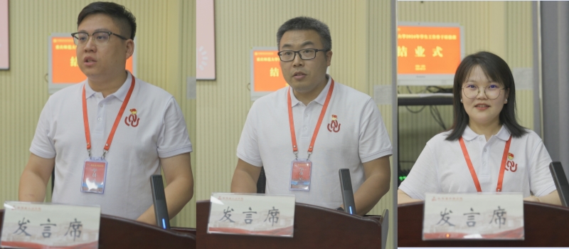 结业式上,三名学员代表作交流发言。地理与旅游学院党委副书记兼纪委书记熊宇表示,红旗渠精神震撼人心,红旗渠不仅是工程奇迹,更是信念与奉献的真实写照。本次培训师资雄厚,内容扎实,形式多样,效果显著。作为一名共产党员和高校思政工作者,我们将学习贯彻党的二十届三中全会精神,把红旗渠精神融入工作,履行好为党育人、为国育才的崇高使命,为全面建成社会主义现代化强国、实现第二个百年奋斗目标,以中国式现代化全面推进中华民族伟大复兴而努力奋斗。历史与社会学院学工办主任、团委书记唐小勇表示,在红旗渠干部学院参加的学生工作骨干培训研修,是一次理论和能力的提升,更是一场荡涤心灵的精神洗礼。作为一名高校辅导员,自己将深入学习贯彻党的二十届三中全会精神,坚定不移用党的创新理论武装头脑、推动工作,以红旗渠精神为引领,以学生成长为中心,找准和突破学生工作、团学工作的痛点、难点,努力做好青年学生的人生导师和知心朋友,当好学校改革发展的“闯将”“干将”。美术学院辅导员李黎表示,新时代赋予红旗渠精神新的内涵与意义,红旗渠精神赋予每一个人新时代前进的动力与方向,作为一名高校思政工作者,我们要把学习红旗渠精神与学习贯彻党的二十届三中全会精神、与落实立德树人根本任务、与创新学生工作紧密结合起来,要把学习效果转化为立德树人的内生动力,推动时代新人铸魂工程走深走实,切实肩负“为党育人、为国育才”时代责任与使命。