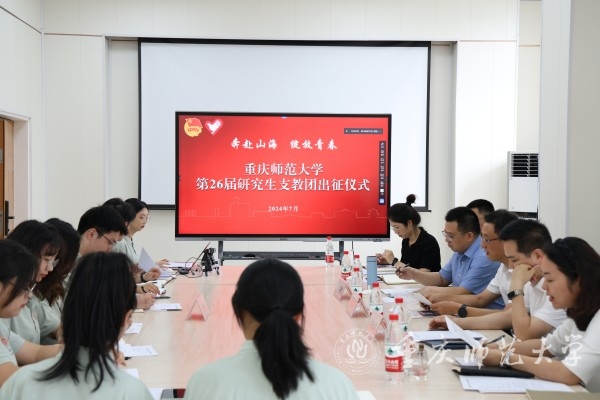 与会职能部门负责人介绍了学校第26届研支团建设工作情况,并向他们赠送出征行囊。第25届研支团同学汇报城口分队和西藏昌都分队的支教工作情况,第26届研支团成员进行出征宣誓。