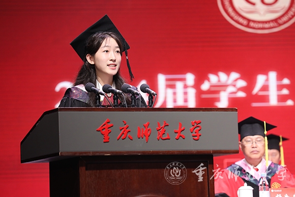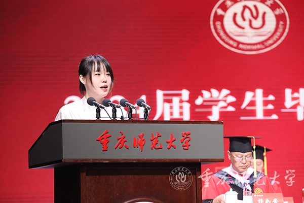 本科毕业生代表、文学院2020级汉语言文学(师范)专业的方紫颖在发言中表示,她会以全新的身份担起新时代青年的社会责任,以身作则,坚持砥砺学习之志,不断充实自我,以适应时代的发展,为社会贡献青春力量。