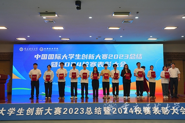 颁奖仪式环节,付文升为中国国际大学生创新大赛(2024)校赛金、银、铜奖获奖团队颁发了荣誉证书,杨如安为中国国际大学生创新大赛(2023)市赛获奖团队颁发荣誉证书,王国胤为中国国际大学生创新大赛(2023)国赛获奖团队颁发了荣誉证书。