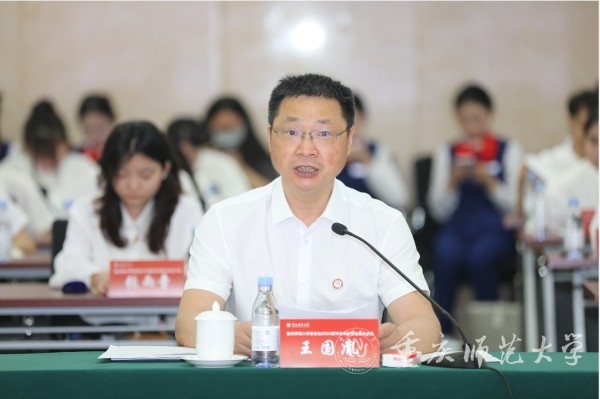 王国胤代表学校和校友会向2024届毕业年级分会的成立表示热烈的祝贺,并激励理事们积极发挥校友会建设的参谋、助手作用,努力加强校友与母校之间的沟通与合作,构建母校与校友的发展共同体。他对新选理事会成员寄予了三点殷切期望:一是坚定理想信念,勇担时代重任;二是赓续重师精神,弘扬校友文化;三是加强校友联系,共谋发展大计。最后,他代表母校向即将踏上新征程的毕业生表达了深深地牵挂和诚挚的祝福,祝愿每一位毕业学子都能怀揣着年轻的信念、满腔的热情和强烈的责任感,勇敢地面对未来的挑战,不断书写人生的精彩篇章。