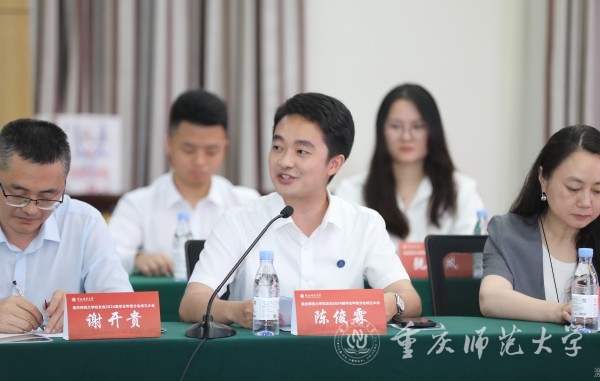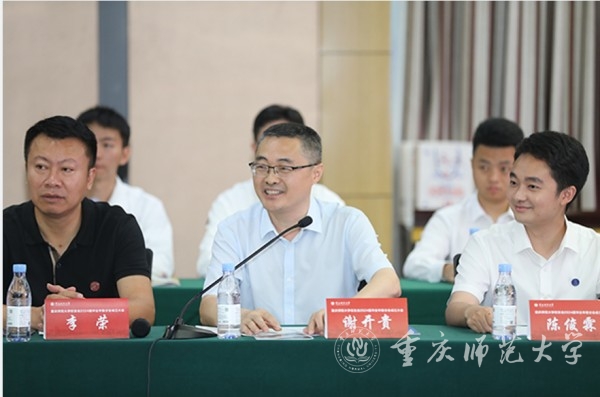 沙坪坝校友代表处会长、1995届校友谢开贵发言。他从加强组织内部建设、打造校友交流平台、开展多彩校友活动、助力校友与母校共荣发展等方面分享了沙坪坝校友代表处广泛汇聚校友资源、凝聚校友情感的宝贵经验。
