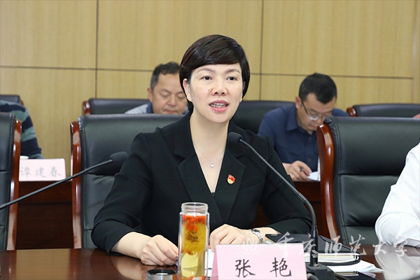 张艳在讲话中指出,习近平总书记的重要讲话重要指示精神,以中国式现代化建设的全局视野,结合重庆发展实际和独特优势,深刻阐述了事关重庆高质量发展的一系列根本性、方向性、全局性重大问题。学校要抓住国家战略叠加的机遇期,在现代化新重庆建设中找准自身定位,主动把学校事业发展放到习近平总书记赋予重庆的战略使命和发展任务中谋划,充分发挥特色优势,以召开第四次党代会和70周年校庆为契机,深入实施“三高一特四卓越”八个五年行动计划,奋力推动学校事业高质量发展,以更高站位、更大担当、更有力行动坚决扛起新的使命任务,为现代化新重庆建设贡献重师力量。
