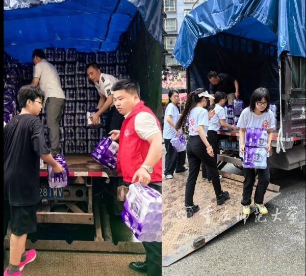 重师学子协助搬运救灾物资