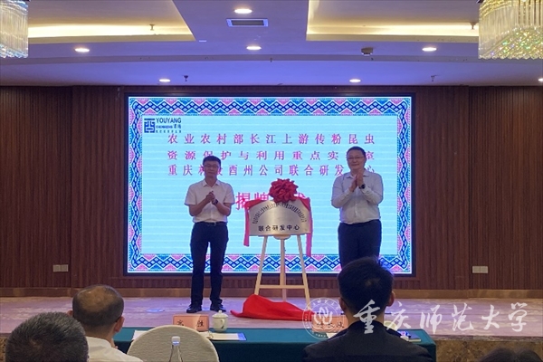 会上,重庆酉州林业开发有限公司、beat365中文官方网站生命科学学院与酉阳土家族苗族自治县科学技术协会签订“林下经济蜂产业科创合作”协议,酉阳土家族苗族自治县副县长高胜和付长波为农业农村部长江上游传粉昆虫资源保护与利用重点实验室重庆林投酉州公司联合研发中心进行揭牌。