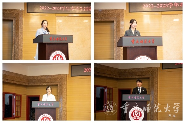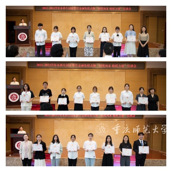 党委学工部(学生处)部长(处长)胡小强向获得国家奖学金的同学表示祝贺,希望他们不断超越自我,以更加昂扬的斗志、更加优异的成绩回报学校和社会。他寄语全体同学:坚定理想信念,激发挺膺担当,汲取朋辈榜样力量,争做重师“名生”的传承者,在青春的赛道上奋力奔跑,成长为担当民族复兴大任的时代新人。