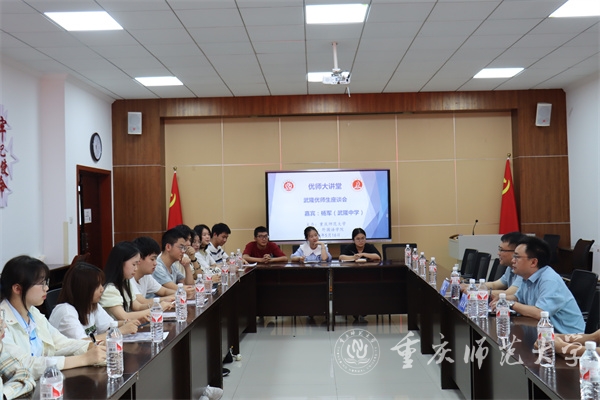 讲座后,杨军与来自beat365官网各学院的20位定向武隆的“优师计划”学生进行座谈交流。他详细介绍了武隆的地理优势、丰富的旅游资源以及便捷的交通条件,并鼓励同学们履行合约,将所学知识付诸实践,为武隆的教育事业贡献自己的力量。
