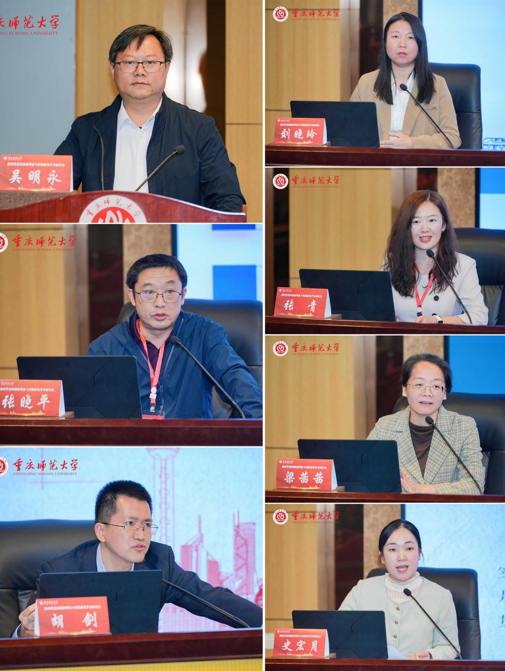 下午第二场主题报告由陕西科技大学马克思主义学院院长吴明永教授主持。重庆交通大学马克思主义学院院长张晓平教授,重庆理工大学马克思主义学院副院长胡剑教授,西南交通大学马克思主义学院刘晓玲副教授,沈阳航空航天大学科研院马克思主义学院张青教授,华中师范大学博士研究生、广西科技大学副研究员梁茜茜,北京林业大学马克思主义学院史宏月老师分别以“中国式现代化的内在意蕴”“‘红岩思政’的立德树人意蕴”“数智时代思想政治教育创新发展的内在逻辑与实践路向”“中国式现代化视域下思政引领力的提升向度”“精神生活共同富裕的规律性认识:内在特征、基本要求及实践进路”“新时代思想政治教育治理的文化意蕴”为主题作主旨发言。