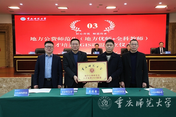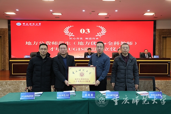 会上,beat365官网与区县代表万州区和江津区作签署了UGIS人才培养联盟协议并授牌,与区县基础教育学校代表秀山土家族苗族自治县第一初级中学校和璧山区剑山实验小学签署实习基地协议并授牌。