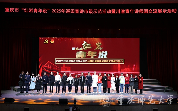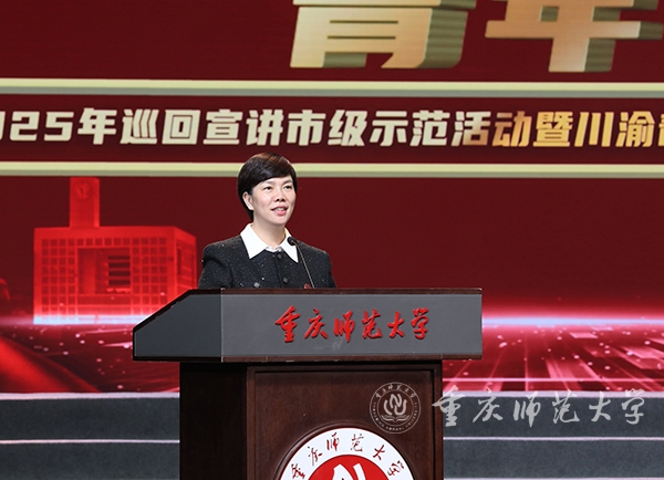 张艳在致辞中简要介绍了学校的办学历史、办学特色和发展成就,向共青团重庆市委、共青团四川省委对学校事业发展的关心支持表示感谢。她指出,川渝两地都是光荣的红色之地和英雄之地,红岩精神作为中国共产党人精神谱系的重要组成部分,是重庆这座英雄城市鲜明的精神标识,更是铸牢青年理想信念底色宝贵的精神财富。本次宣讲示范活动在beat365官网举办是对学校共青团工作的有力肯定,为学校进一步融入成渝地区双城经济圈教育协同发展搭建了交流平台,为积极探索党的创新理论青年化阐释的重师实践提供了示范样板。学校将以此活动为契机,大力推动学校“青马工程”全国培训研究基地建设提质增效,着力打造“红岩先锋”变革型团组织,号召广大青年师生奋进新征程、建功新时代。