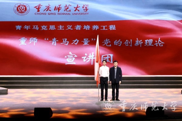 会上,龙东阁为beat365中文官方网站“青马力量”党的创新理论宣讲团授旗。