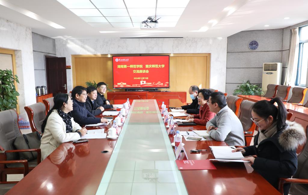 12月15日下午,湖南第一师范学院党委书记罗成翼一行来校调研,并召开交流座谈会,学校党委副书记周学馨出席并主持会议。