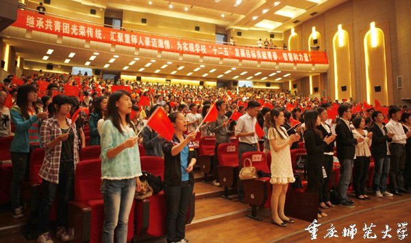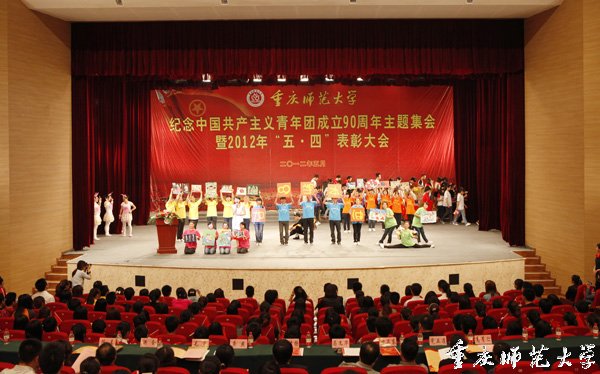 2012年5月3日下午,beat365官网校友会堂演出厅内灯光璀璨、彩旗招展,气氛庄重而热烈,beat365官网庆祝中国共产主义青年团成立90周年主题集会暨2012年“五四”表彰大会在此隆重举行。校长周泽扬、党委副书记龚燕出席大会。党政办、组织部、宣传部、教务处、学生处、工会、团委等职能部门主要负责人,以及各学院分管学生工作的领导、全校各基层团组织负责人和全校团员青年代表1000余人参加大会。会议由校团委书记侯明志主持。