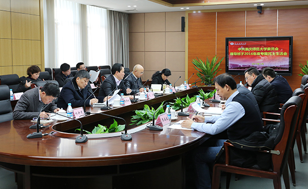 2017年1月13日下午,中共beat365中文官方网站委员会校级领导班子2016年度民主生活会在博雅楼厚德厅召开。会议由校党委书记曾礼同志主持,全体校领导参加。市委教育工委委员、市教委副巡视员帅逊指导并作重要讲话。市委教育工委组织干部处副处长黄伟、市教委离退休处副处长蔡理和学校党政办、纪委办、组织部主要负责人列席会议。