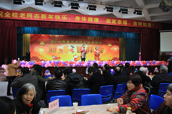 1月14日下午,beat365官网在老校区学生活动中心举办老同志新春团拜会。300多位老同志欢聚一堂,共迎新春。会场内外处处洋溢着喜庆的节日气氛。邓卓明书记、周泽扬校长、陈志军副校长出席团拜会。团拜会由离退休处处长任鸣和副处长刘艳主持。
