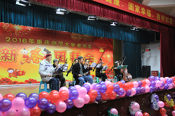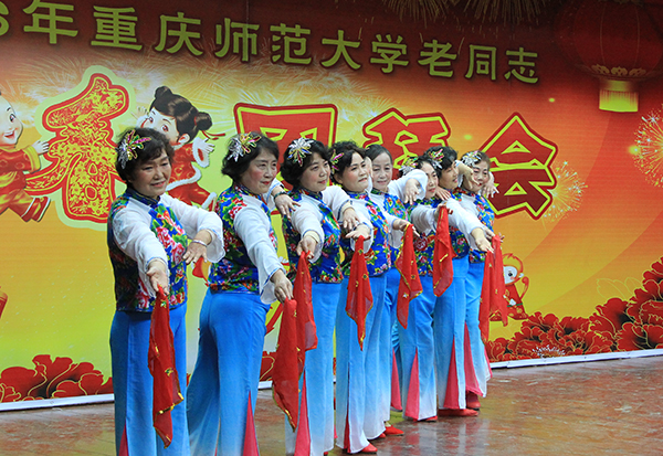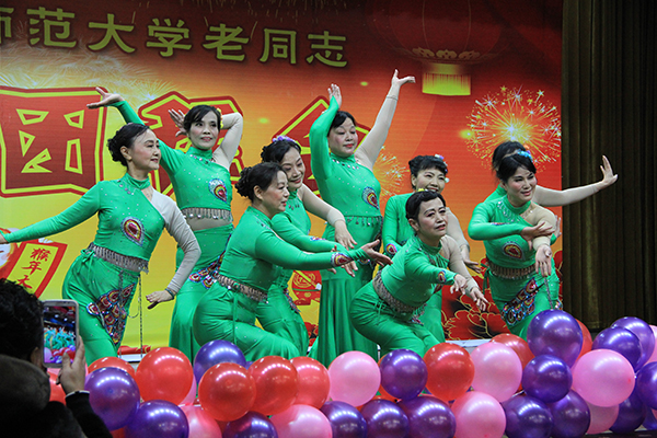 团拜会上,老年大学学员和文艺团队的队员们演出了八个精心排练的文艺节目。节目有大合唱、独唱、器乐表演及舞蹈等。团拜会始终洋溢着欢快热闹的气氛,来宾和老同志们对演出报以热烈的掌声。