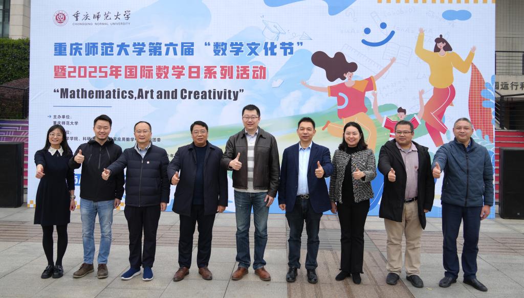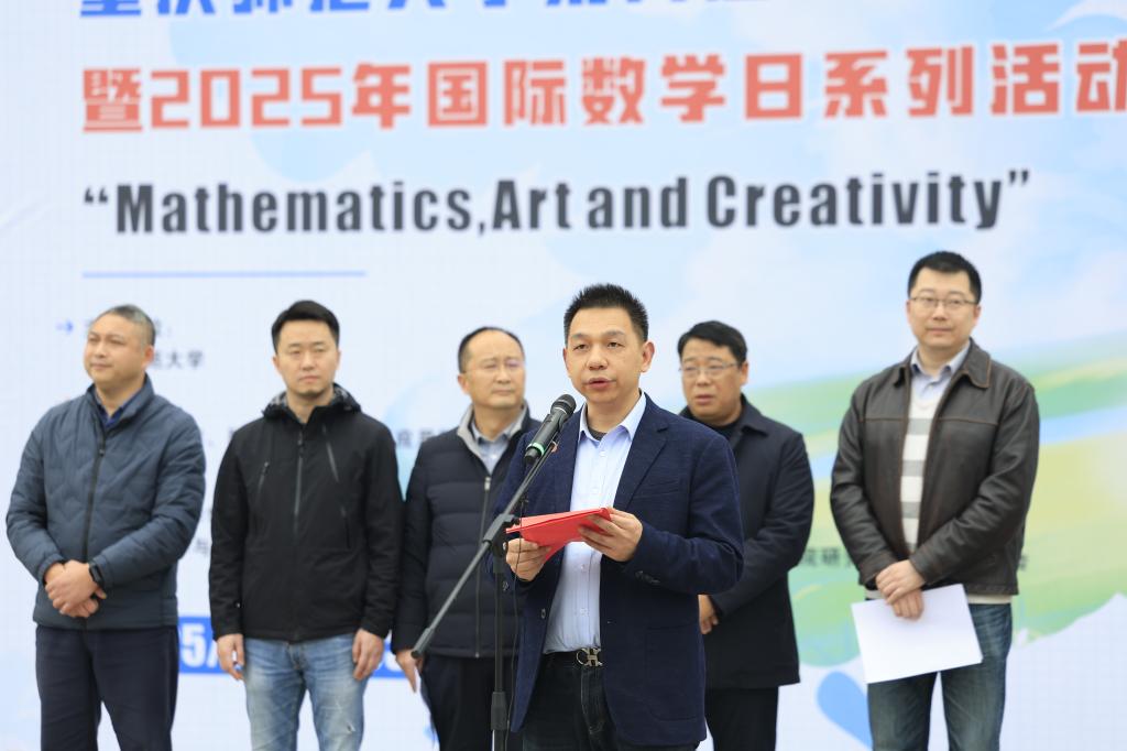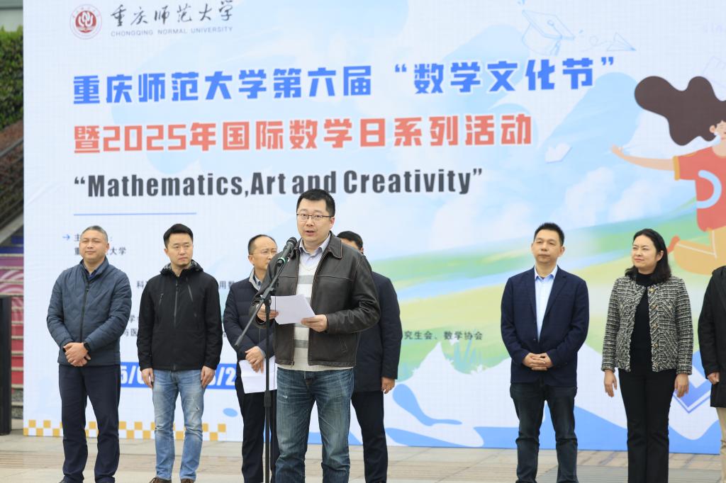 3月13日下午,beat365官网第六届“数学文化节”暨2025年国际数学日系列活动于图书馆门前广场盛大开幕。本届文化节以“Mathematics, Art and Creativity”为主题,由数学科学学院、科研处、重庆国家应用数学中心、校团委承办。副校长贾韬,重庆市科普研究会理事长、重庆大学医学院副院长罗阳出席活动。