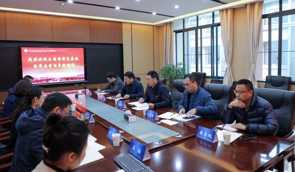 3月17日至18日,学校党委副书记、校长王国胤带队赴化学学院、经济与管理学院、采购与招投标中心、基本建设管理处调研。
