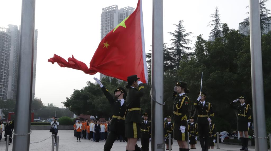 历史与社会学院(考古文博学院)、党委学工部、校团委相关负责人及师生代表参加升国旗仪式。