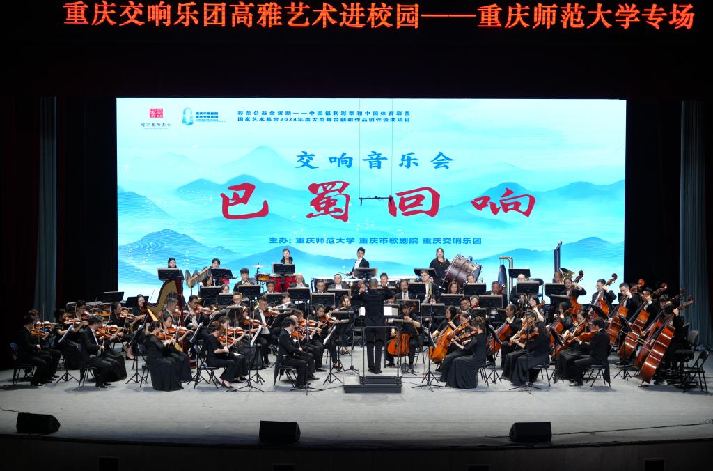 5月8日,重庆交响乐团走进beat365中文官方网站校友会堂,倾情呈现《巴蜀回响》交响音乐会。重庆歌剧院、重庆交响乐团党总支副书记、副院长张维佳及相关领导,学校党委副书记、校长王国胤,党委常委、副校长黄永宜,副校长付文升出席本次活动,与现场近800名师生共赴音乐盛宴。