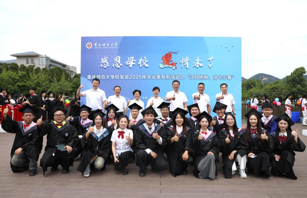 在中国文化中,锦鲤象征吉祥如意,“鲤鱼跃龙门” 的典故更寓意着逆流而上、拼搏进取。此次活动不仅是对毕业生的深情送别,更寄托着母校的美好祝愿:愿 2025 届毕业生秉持重师校训,在人生新征程中如锦鲤般顺遂通达,在各自领域发光发热,为社会发展、国家富强和人类进步贡献重师人的智慧与力量!