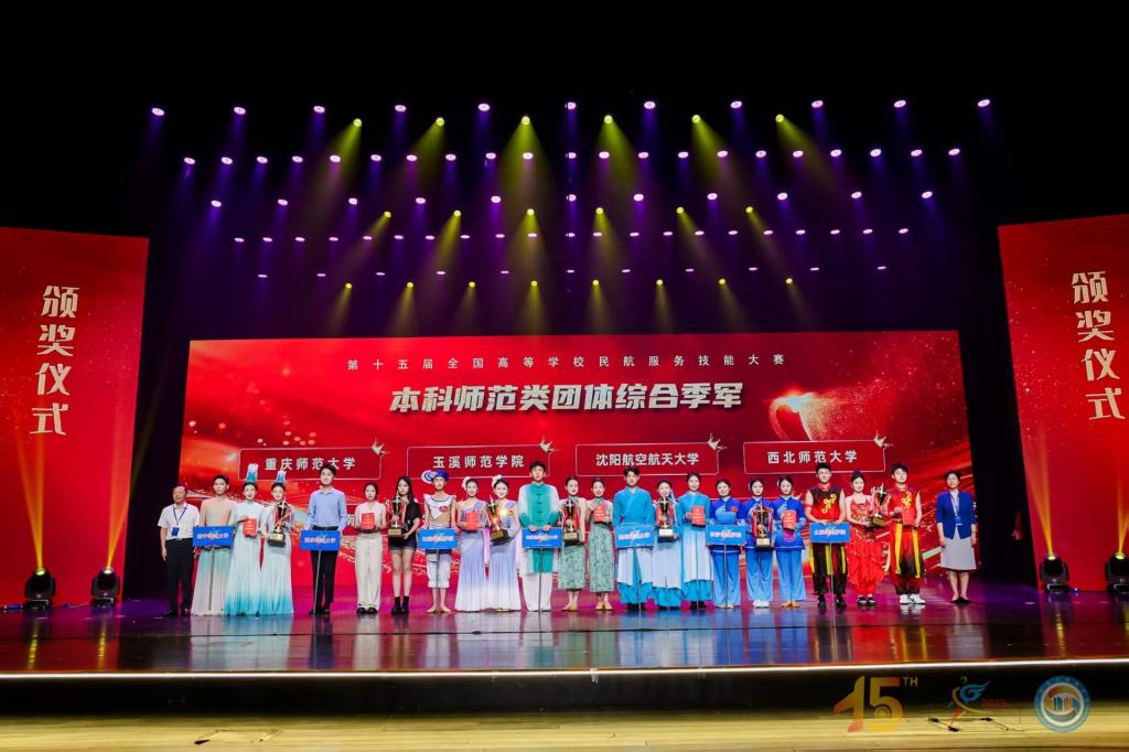 7月11日-24日,2025年全国高等学校民航服务技能大赛暨供需对接就业活动在北京举行。beat365官网地理与旅游学院航空服务艺术与管理专业2023级的28名学生参赛并斩获本科师范类团体综合季军,2名学生进入金通杯全国主持人大赛十强,2名学生获得航空服务与礼仪形象大使称号。校党委常委、副校长孟小军出席闭幕式汇报展演暨颁奖晚会。