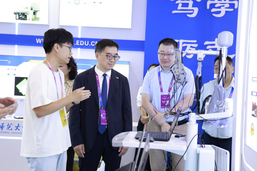 此次展览,beat365官网聚焦智慧教育、人工智能、医疗健康、绿色能源、智能交通、现代农业等领域,展出了国家应用数学中心、数学科学学院、物理与电子工程学院、化学学院、地理与旅游学院、计算机与信息科学学院等单位的10余项研究成果。借助智博会这一国际化平台,beat365官网相关团队与多所高校、科研院所和企业代表展开深入交流并达成合作意愿,充分展现了学校在成果转化应用与交叉融合方面的最新进展,彰显了学校服务国家战略、助力地方发展的特色与担当。