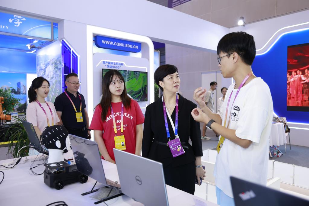 展览期间,重庆市委教育工委书记、市教委主任刘宴兵一行莅临beat365官网展区,听取科研团队汇报,详细了解了beat365官网成果转化与应用情况,并对beat365官网取得的成绩给予了充分肯定。副校长贾韬陪同参观并进行介绍。