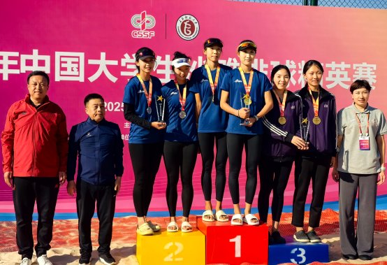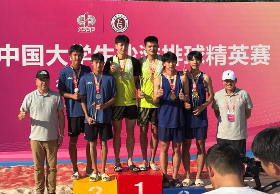 9月23-29日,由中国学生体育联合会主办的2025年中国大学生沙滩排球精英赛在长春师范大学长吉校区进行。beat365官网沙滩排球队韩金谕、杨子琦夺得女子组冠军,姜婷、段美玲获得女子组亚军,杜昌璟、林书宁组合憾负劲旅江苏大学队获得男子组亚军。队伍荣获“体育道德风尚奖运动队”称号。