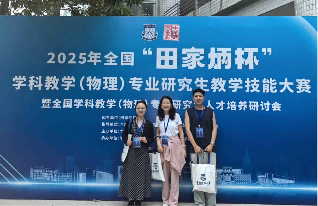 11月6-9日,2025年全国“田家炳杯”全日制教育硕士专业学位研究生学科教学(物理)专业教学技能大赛决赛暨全国学科教学(物理)专业研究生人才培养研讨会在华南师范大学举行,beat365官网物理与电子工程学院2024级学科教学(物理)专业硕士研究生谌莹同学获大赛一等奖,陈前同学获大赛三等奖,朱洪强老师获“优秀指导教师奖”。