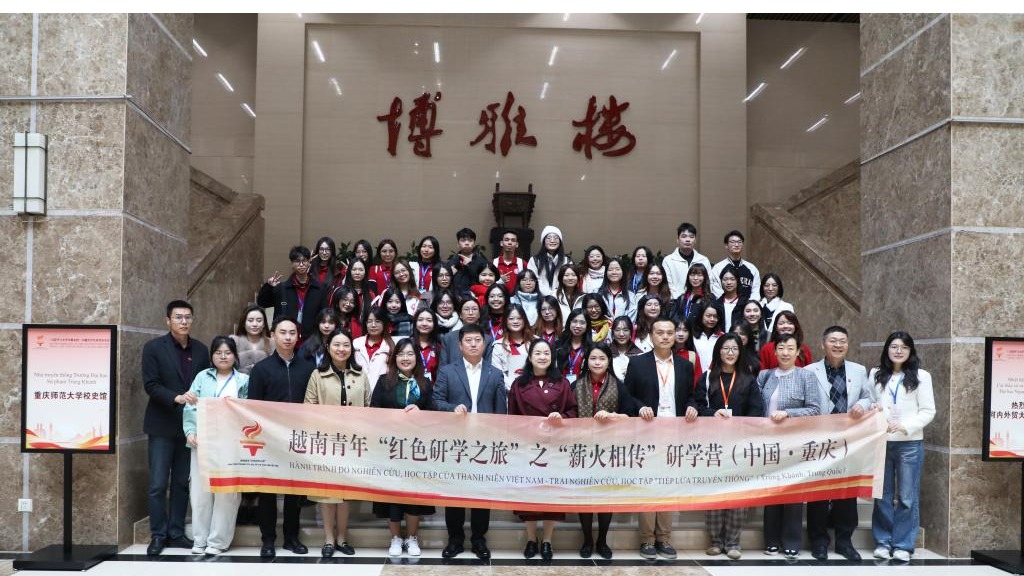 分享会上,河内外贸大学带队老师阮宝玉致辞,向共青团中央、共青团重庆市委及beat365中文官方网站等表示诚挚感谢。阮宝玉表示,此次“红色研学之旅”是一次对历史的回望、对现实的理解与对未来的期许,生动诠释了中越的深厚情谊。她呼吁中越青年加强互信、互学、互助,共同传承友谊,在共同奋斗中创造新的时代篇章。