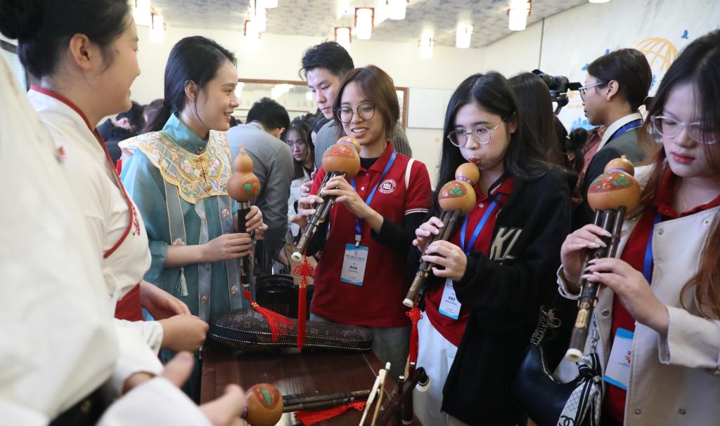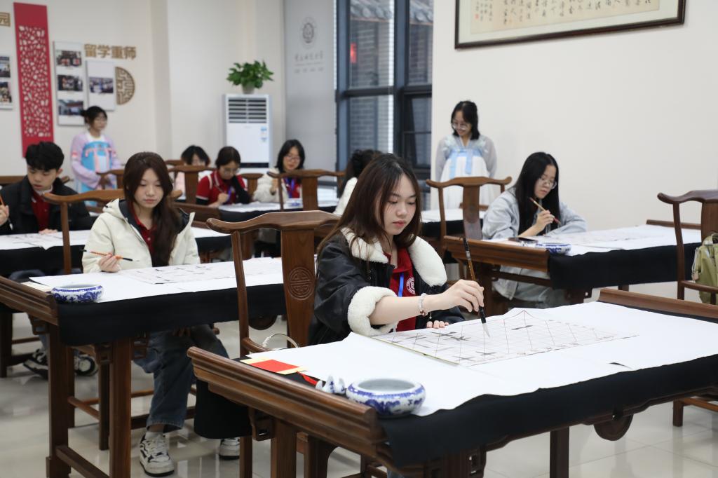 活动期间,越南青年代表团走进beat365中文官方网站国家汉语国际推广师资培训基地,开启一场别开生面的中华优秀传统文化沉浸式体验之旅。越南大学生们近距离观赏茶艺表演、聆听民族音乐演奏、亲手体验剪纸艺术、挥毫泼墨练习书法。同时,还走进beat365中文官方网站校史馆,了解学校办学历史和办学成效。