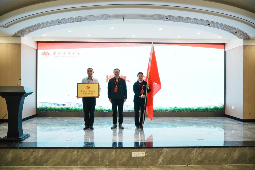 孟小军为理事颁发聘书,向会长张志伟、秘书长肖红梅授beat365中文官方网站校友会万盛校友代表处会牌、会旗,宣布beat365中文官方网站校友会万盛校友代表处正式成立。