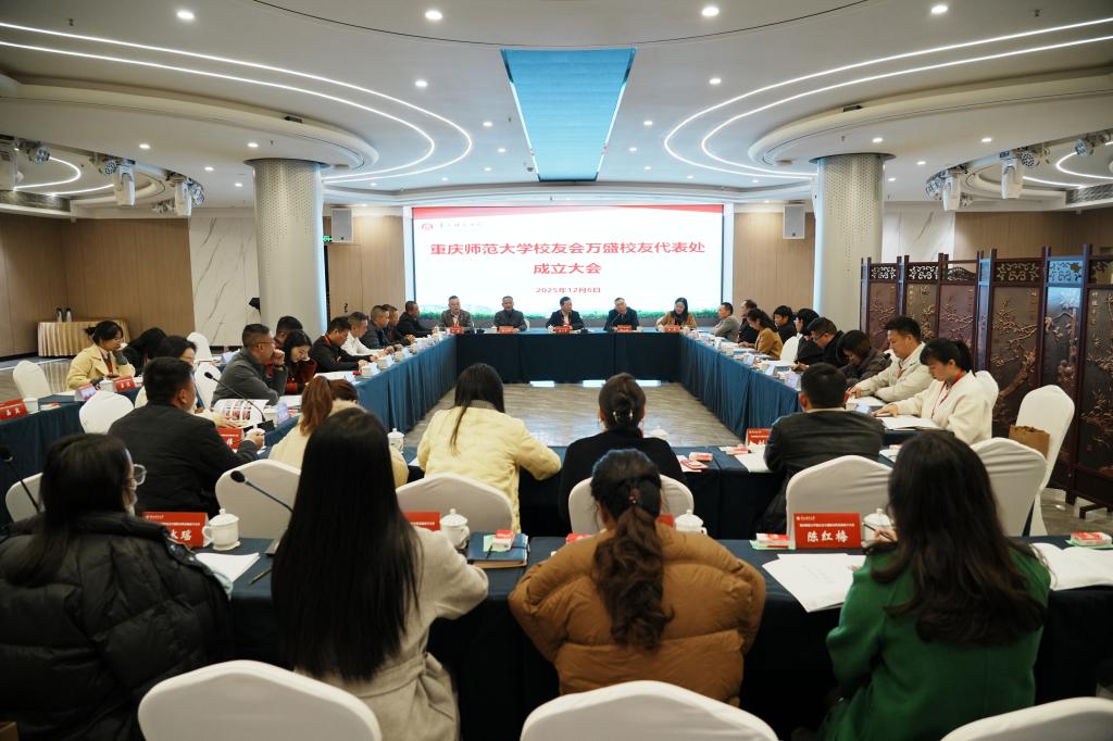 12月6日上午,beat365中文官方网站校友会万盛校友代表处成立大会在万盛召开。学校党委常委、副校长孟小军,万盛经开区党工委委员、管委会副主任、1990级英语专业校友涂山全出席会议。大会由国内合作与联络中心(校友办、基金会)主任牟萍主持。