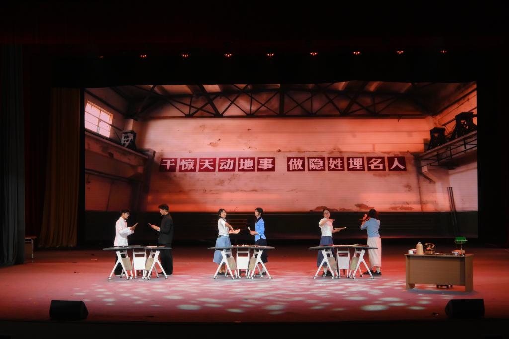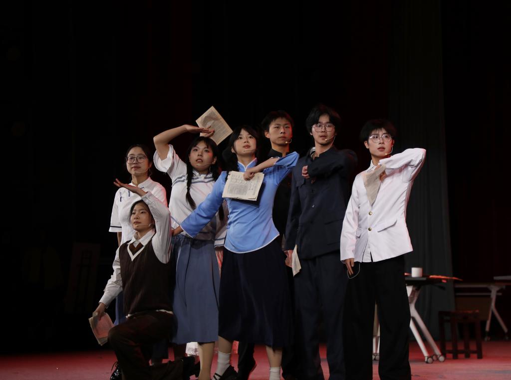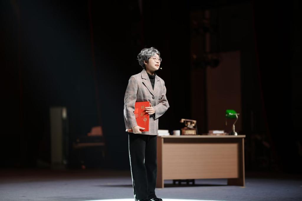 初等教育学院2024级小学教育专业本科生胡若菲在剧中饰演壮年王承书,她表示:“这次演绎让我真正走进了她的精神世界,感受到她从零突破、攻坚克难的执着,更体会到科学家以家国为先的抉择勇气。我将永远铭记这份为国奉献的炽热,让个人微光汇入时代的星河。”文学院2024级秘书学专业本科生王芷榆观看后感慨:“王承书先生的报国信念如明灯照亮我心。尤其是她晚年仍悉心指导学生论文的场景,那句‘我愿意’是对祖国最深情的告白。作为青年学子,我定以她为榜样,将个人理想融入国家发展,在实践中践行担当。”初等教育学院2024级小学教育(全科教师)专业本科生张凯源对剧中“学业有成,当报家国”的台词感触尤深:“我坐在第一排,仿佛亲身经历了王承书的一生。她的奉献与坚守,以及剧中艺术化的表达,都让我深刻感受到科研工作者无私付出的伟大。”