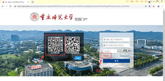 1.请广大师生通过电脑或手机浏览器访问beat365中文官方网站首页/,点击校园门户,进入校园门户首页。或直接访问校园门户地址https://www.csxrz.cqnu.edu.cn/。