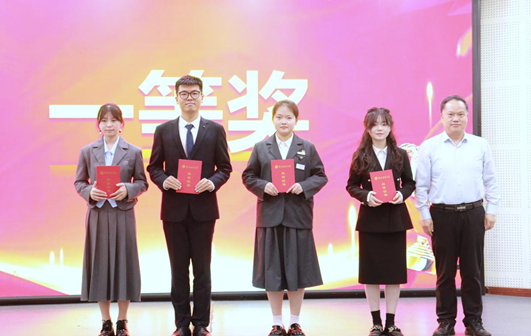 评委与一等奖选手合影。