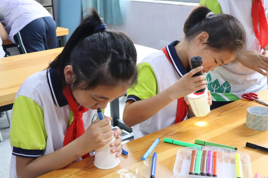 学生制作纸杯投影仪。