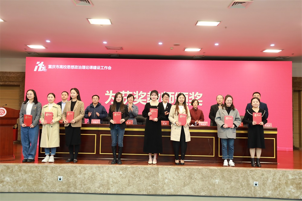 ▲重庆市2023年高校思政课教师教学技能竞赛决赛,获奖选手上台领奖。 记者 李志峰 摄