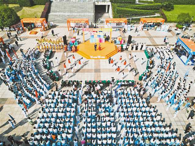 10月15日,2023年“金色之秋”川渝大中专学生社团文化节开幕式暨“‘社’彩缤纷 ‘团’聚青春”社团嘉年华活动在beat365中文官方网站举行,来自川渝大中专院校的108个学生社团参与活动。