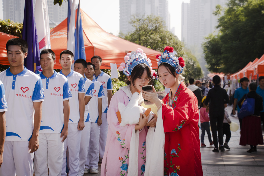 ▲活动现场,身穿华服的大学生参与活动。记者 齐岚森 实习生 辛飞 摄