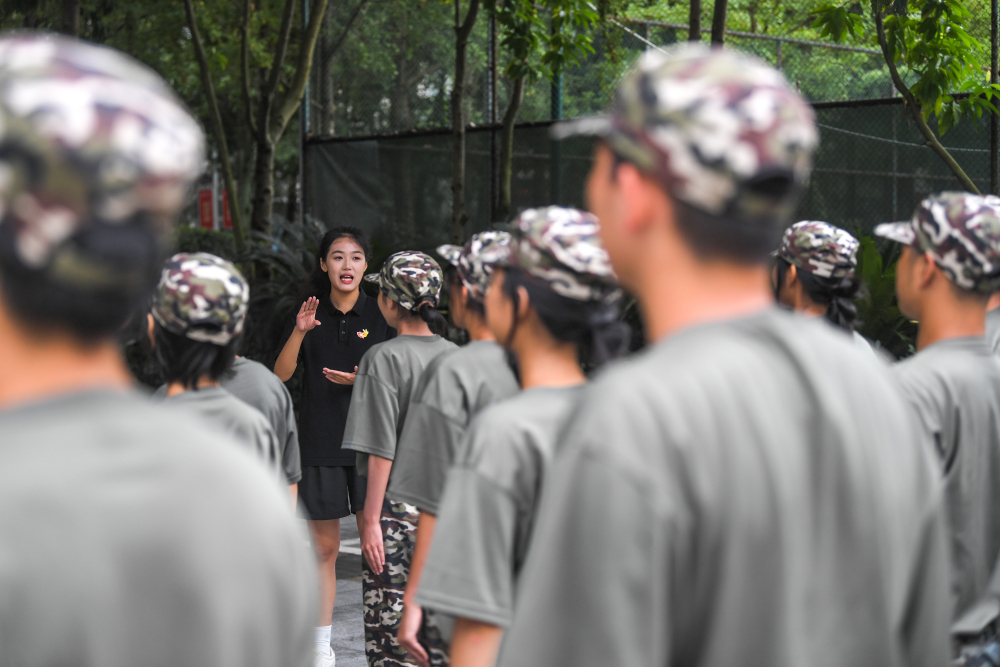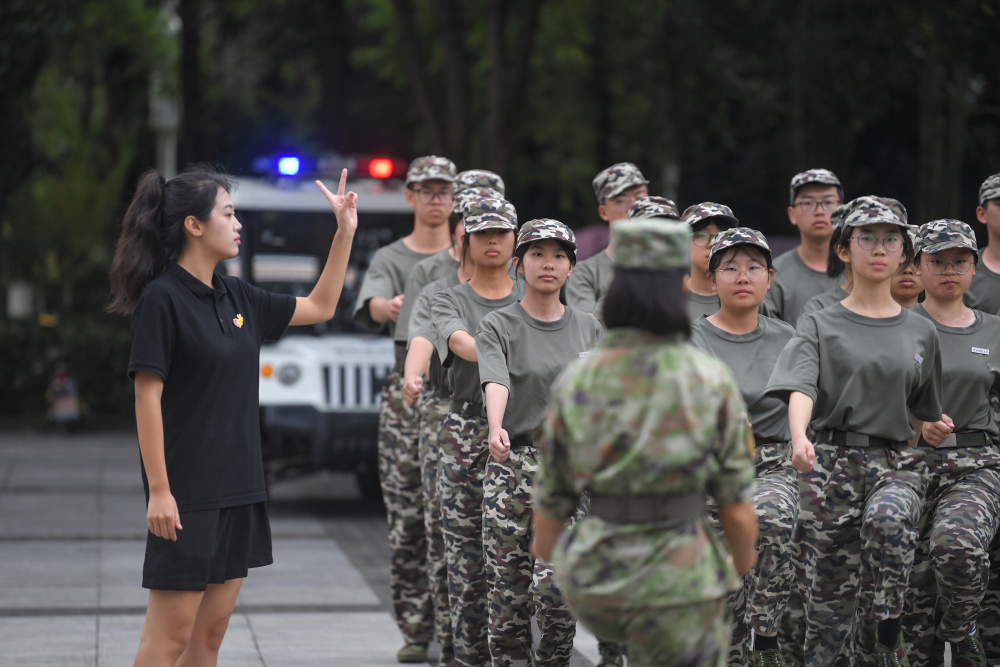 虽然有手语翻译帮忙,但对有听力障碍的孩子们来说,军训过程依然十分困难。“走正步要踢腿、摆手,虽然教官教了很多遍,但大家一直做不到位、走不整齐。”来自“无声方阵”的另一名新生张立言告诉记者,这时这位大姐姐就会走进方阵,一边做标准动作示范,一边用手语讲解细节和要点。