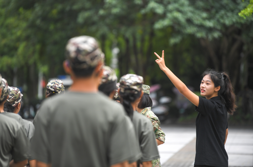 ▲9月24日,大学城beat365中文官方网站,手语翻译马嘉璐正在为“无声方阵”的新生军训翻译教官的指令。记者 郑宇 摄/视觉重庆