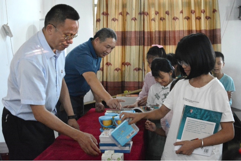 负责人为孩子们分发书籍和学习用品。学校供图 华龙网发