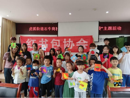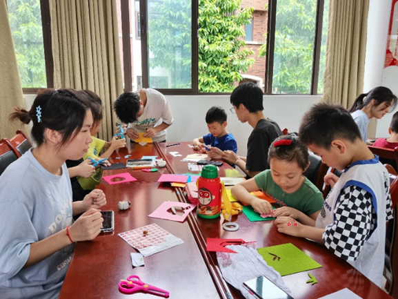 活动末尾,志愿者和小朋友们一起动手制作了“不织布”食品手工,在锻炼动手操作能力的同时,更进一步加深了大家对“节约粮食”的理解。