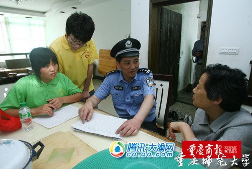 “婆婆,你们家里一共有多少人呢?你们的户籍地址是哪里的?”分配到西永派出所的付同学和王同学在民警的带领下来到西永村进行人口普查。付同学介绍,她今年大二,以前放假都呆在家里,没有参加社会活动。今年有机会参加体验警营生活的活动,她非常兴奋,希望借此向民警学到更多的法律知识,同时体验到民生民情。 据《重庆商报》记者万丽萍 实习生 付迪西