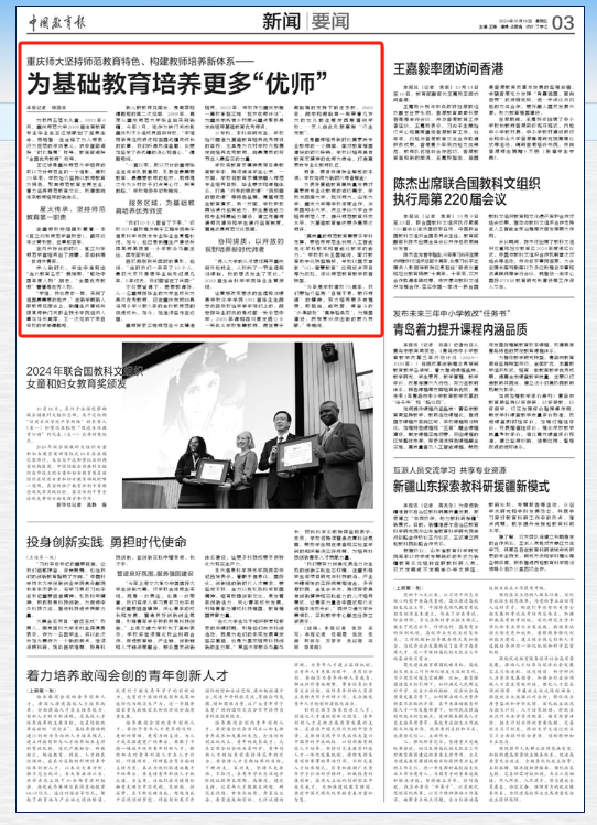 【媒体重师】中国教育报:重庆师大坚持师范教育特色、构建教师培养新体系——为基础教育培养更多“优师”