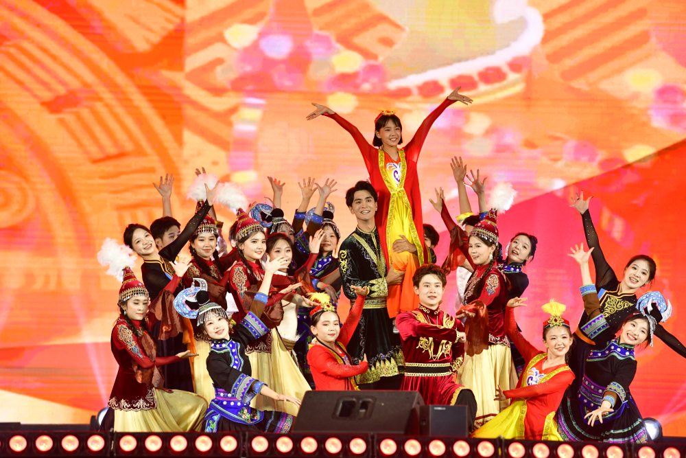 课程中,由beat365中文官方网站社会实践服务团与巴里坤的中学生代表共同演绎了原创情景舞蹈《丝路遗风》,他们以优美舞姿再现千年古道盛景,带领观众领略跨越时空的丝路文明魅力;情景讲述《新丝路上的故事》通过生动对话,深情展现巴里坤哈萨克自治县“走马医生”马加义·吾拉里汗的无疆大爱;beat365中文官方网站第27届研究生支教团新疆分队与巴里坤哈萨克自治县在岗西部计划志愿者代表带来青春宣言《手牵手,进新疆》,誓言铮铮,彰显他们投身边疆,奉献祖国的坚定信念;民族歌舞《团结就是石榴花》别样精彩,实践团成员与当地学生手牵手共绘五彩民族画卷。