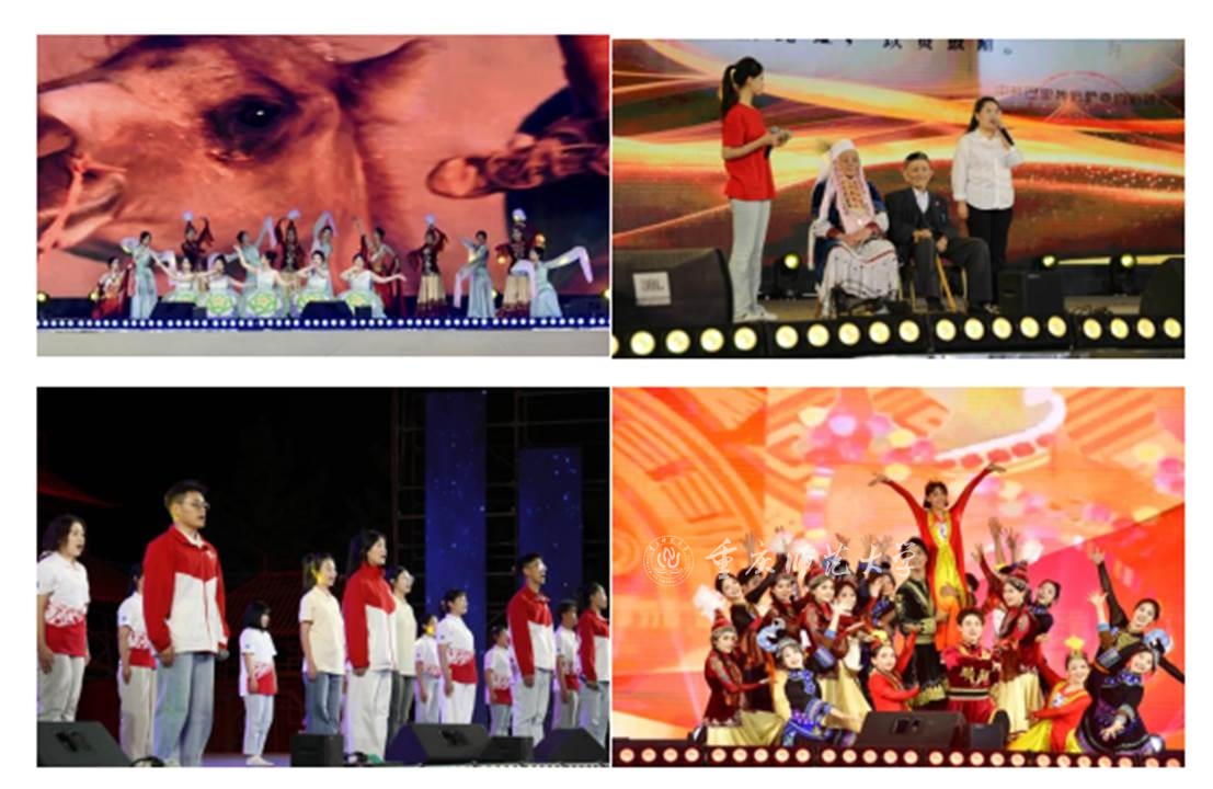 课程中,由beat365中文官方网站社会实践服务团与巴里坤哈萨克自治县中学生代表共同演绎的原创情景舞蹈《丝路遗风》,以优美舞姿再现千年古道盛景,深情联结渝哈两地,带领观众领略跨越时空的丝路文明魅力;情景讲述《新丝路上的故事》通过生动对话,深情展现巴里坤走马医生马加义·吾拉里汗的无疆大爱,县发改委副主任蔡甲,全国民族团结进步模范个人高彩萍及农牧投加工负责人吴宏的激情讲述,呈现一代代人投身建设、不负时代的奋斗篇章;beat365中文官方网站第27届研究生支教团新疆分队与巴里坤哈萨克自治县在岗西部计划志愿者代表带来青春宣言《手牵手,进新疆》,誓言铮铮,彰显他们投身边疆,奉献祖国的坚定信念,让青春在奋斗中绽放绚丽之花;民族歌舞《团结就是石榴花》为观众带来一场视听盛宴,实践团成员与当地学生手牵手共绘五彩民族画卷,心连心同筑坚韧的团结之城,肩并肩齐赴繁盛的复兴征途。